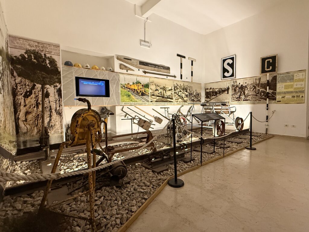 Nella sala sono raccolti vecchi utensili e attrezzature che ripercorrono il passaggio dal lavoro prevalentemente manuale a quello meccanizzato per la costruzione e manutenzione della linea ferroviaria: trapani per la foratura delle rotaie, sega-rotaie, badili di vario tipo, picconi,livelli.